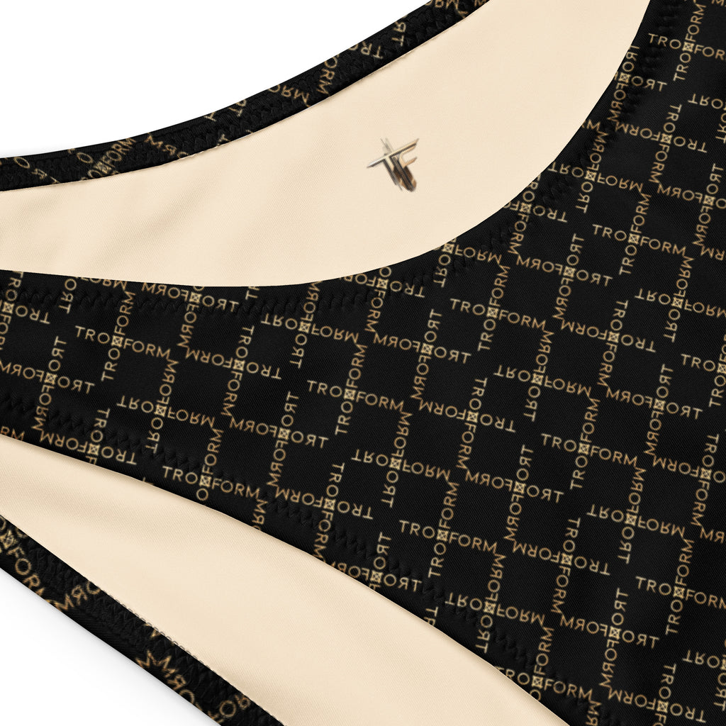 With its high-leg V-cut and minimalist bandeau top, it offers just enough, never too much. The signature TRONFORM gold grid whispers distinction, while the sustainable fabric moves with your body like a second skin. Feminine, timeless, and meant for more than just the beach.