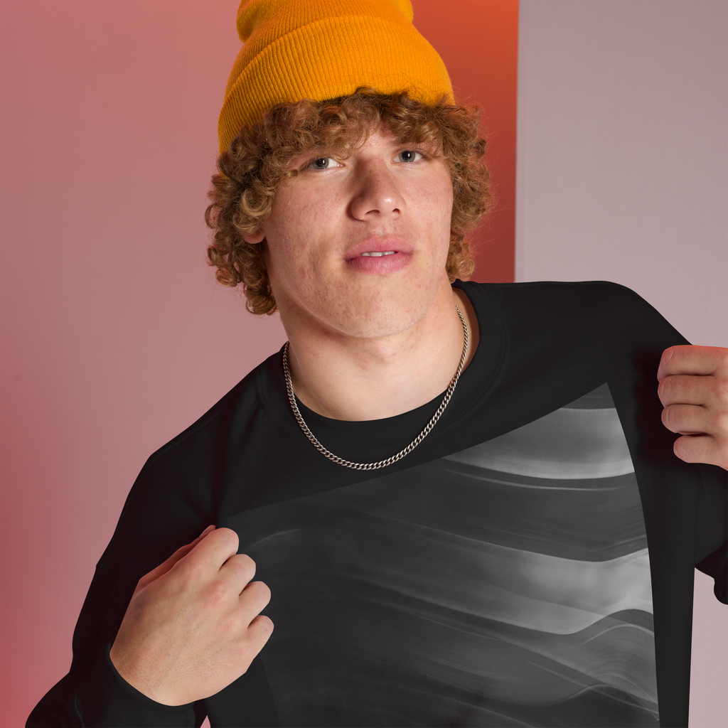 Embrace Style and Warmth: Men’s Fading Wave Unique Refined Edition Sweatshirt.