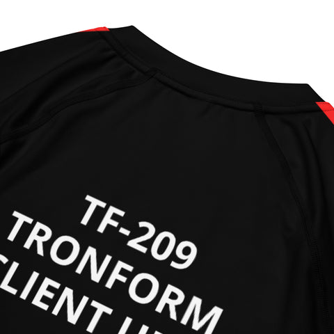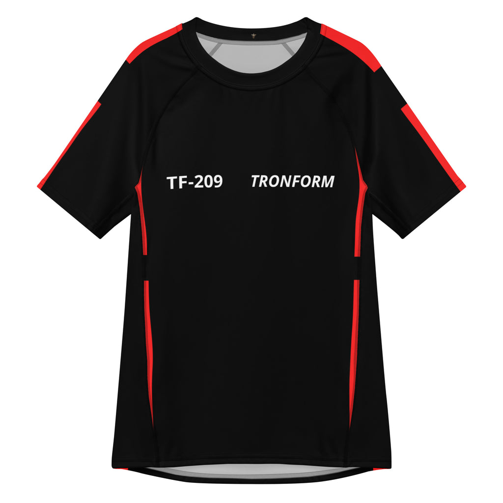The TF-209 TRONFORM Rash Guard is engineered for those who dominate land, water, and the gym with unmatched presence. Featuring bold red linework and TF-209 insignia, this high-performance piece fuses futuristic identity with maximum comfort. Whether you're riding waves, pushing reps, or making a statement, this rash guard moves with you and shields like armor.