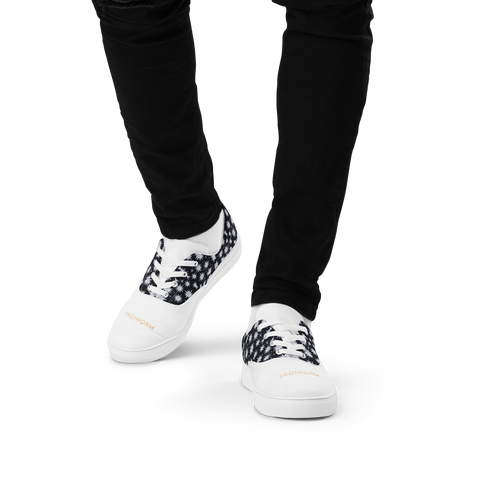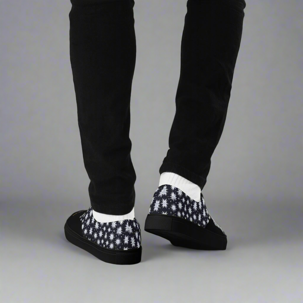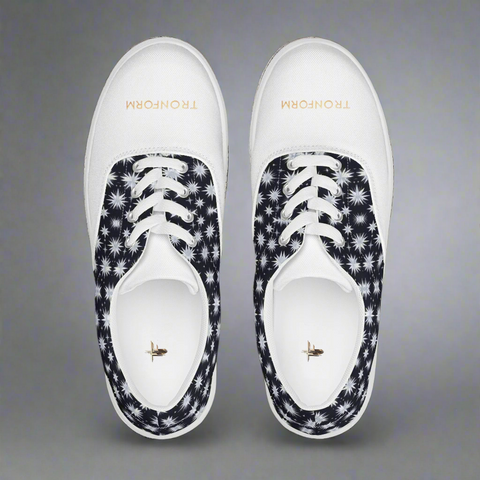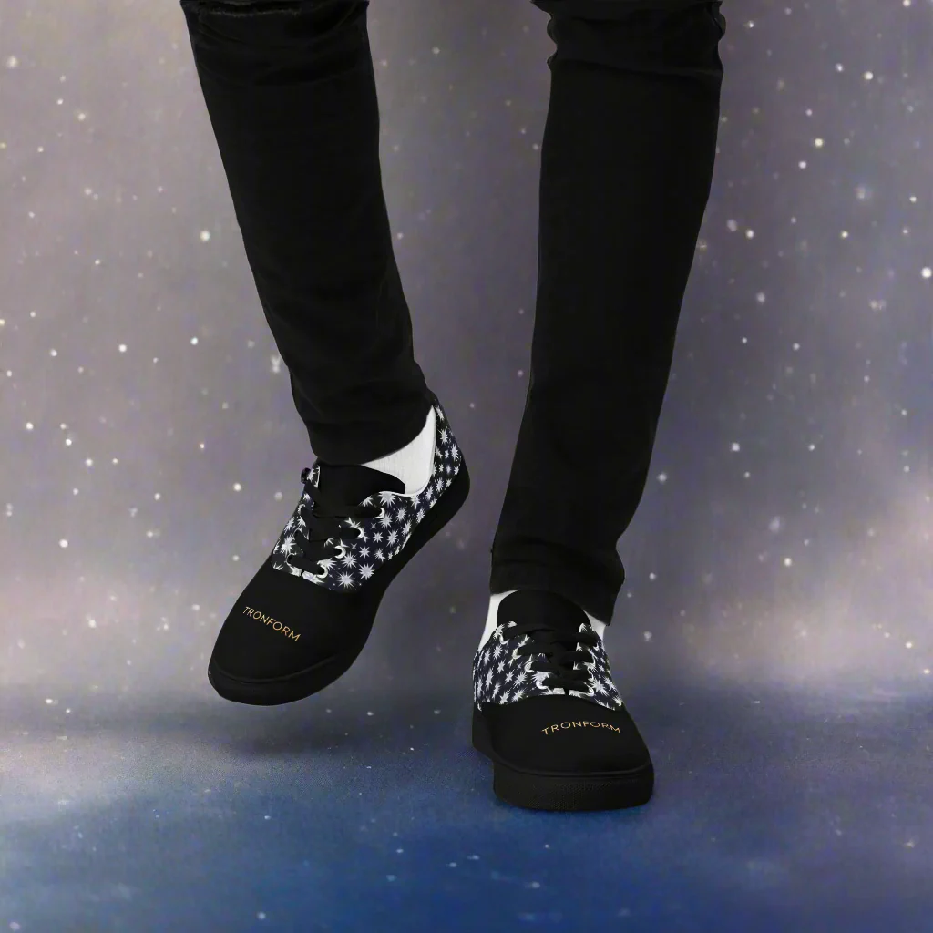 The TRONFORM Astra Starburst Lace-Up Canvas Shoes feature a bold all-over starburst print, seamlessly blending futuristic energy with refined street aesthetics. The deep black canvas base serves as the perfect backdrop for the radiant star motifs, creating a high-impact design that commands attention in any setting. Designed for those who embrace both style and versatility, the TRONFORM Astra Starburst Lace-Up Canvas Shoes combine modern craftsmanship with everyday comfort. Whether you’re out on the streets or making a statement at night, these shoes are built to withstand the wildest moments while keeping you effortlessly stylish.