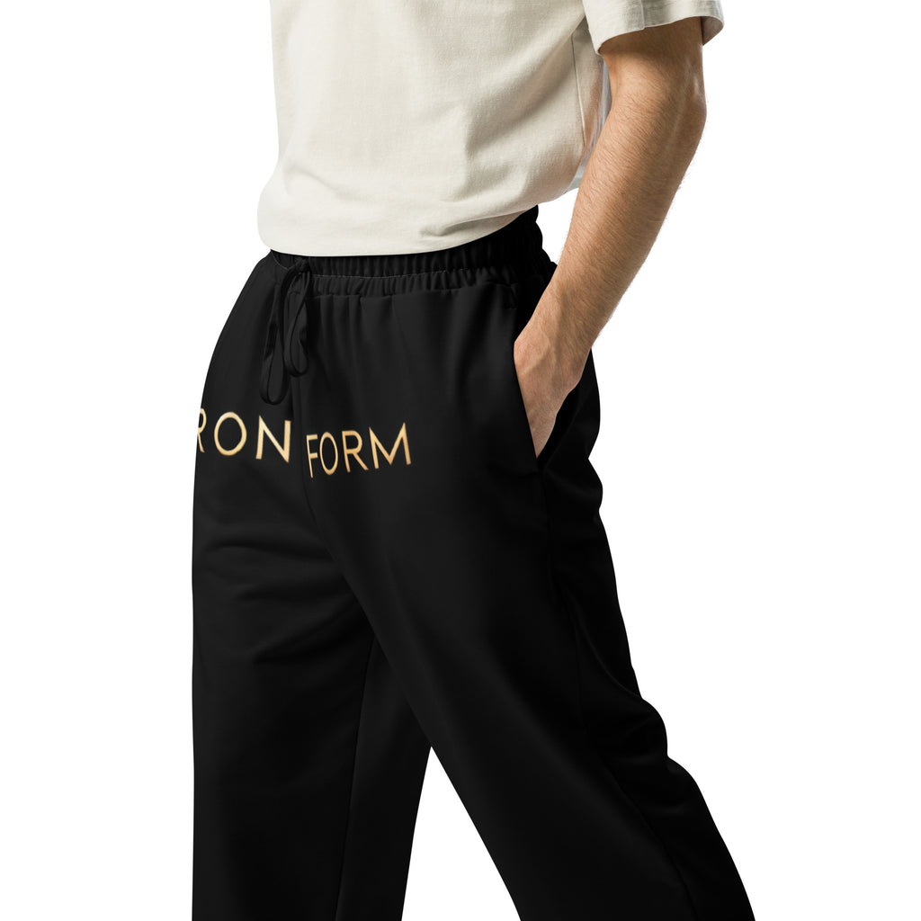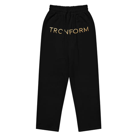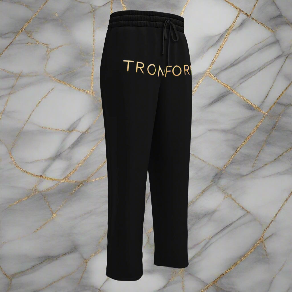 For Celebrities & from the classic inspiration of the 90s streetwear this wide-leg joggers delivers a bold, relaxed silhouette, while the signature TRONFORM logo across the lower waistline makes a powerful statement. Perfect for those who demand style, comfort, and dominance in their wardrobe. The all-black base serves as the perfect canvas for the gold TRONFORM monogram, positioned prominently on the waist, ensuring an elite, high-end look. The wide-leg cut and soft drape create a confident, effortless fit, making them ideal for athleisure, casual styling, or a flex-worthy streetwear moment.