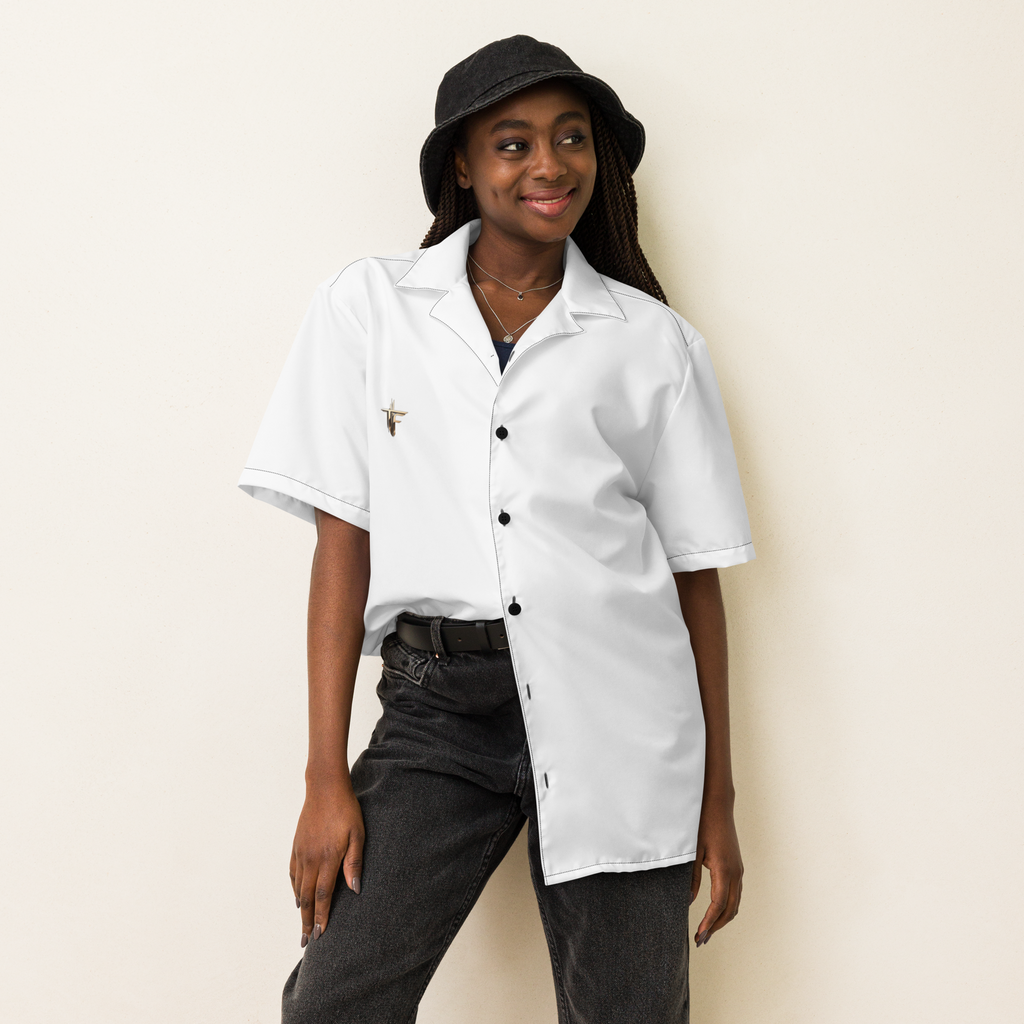 • Elegant buttoned neckline, available in black or white, adding a touch of sophistication to elevate your casual ensemble.