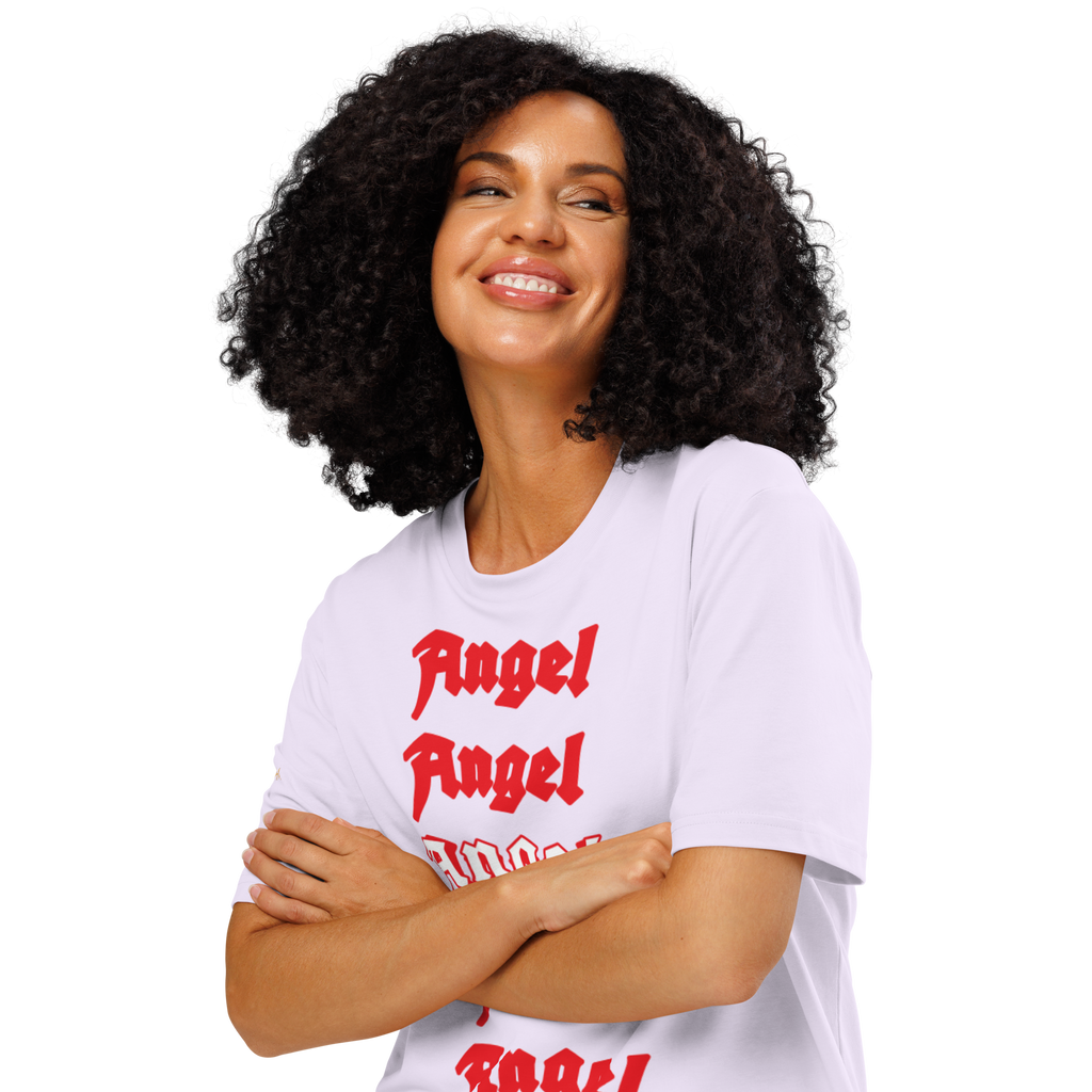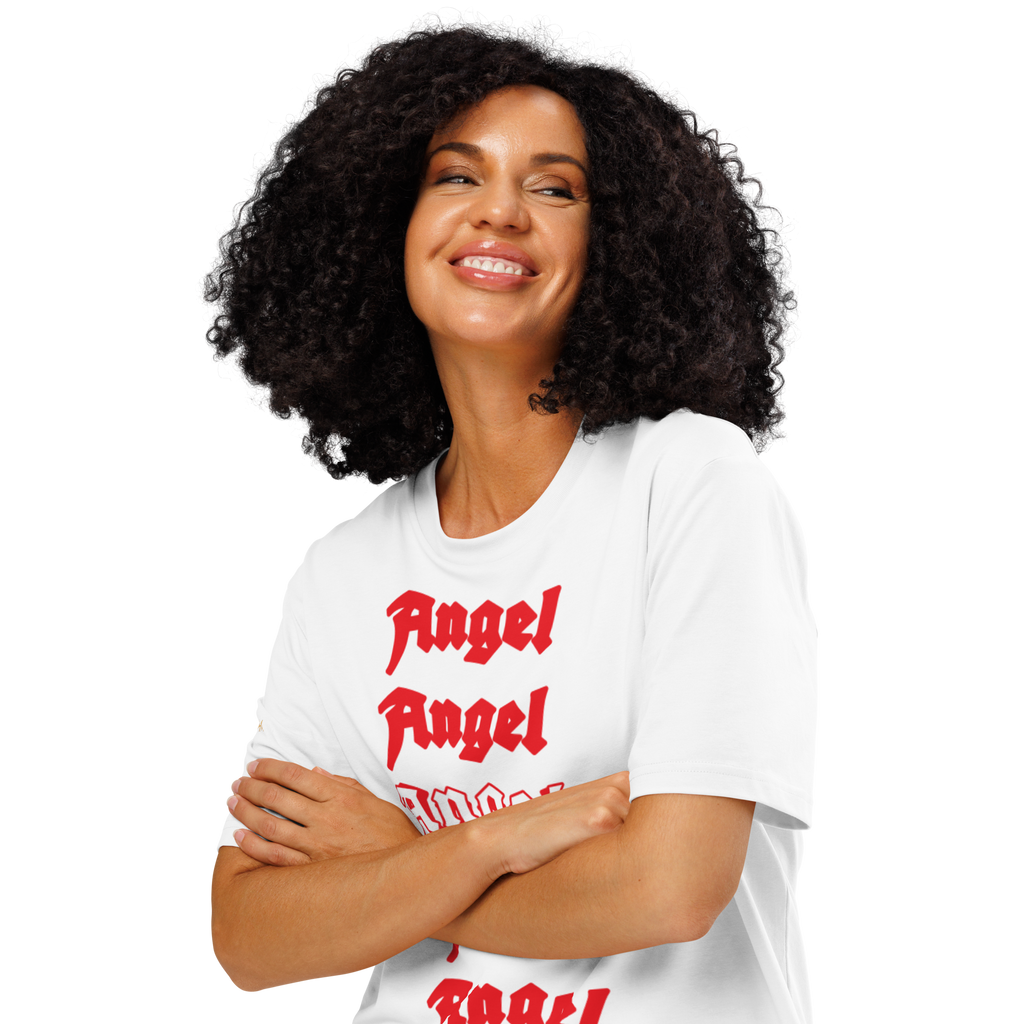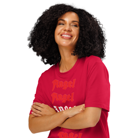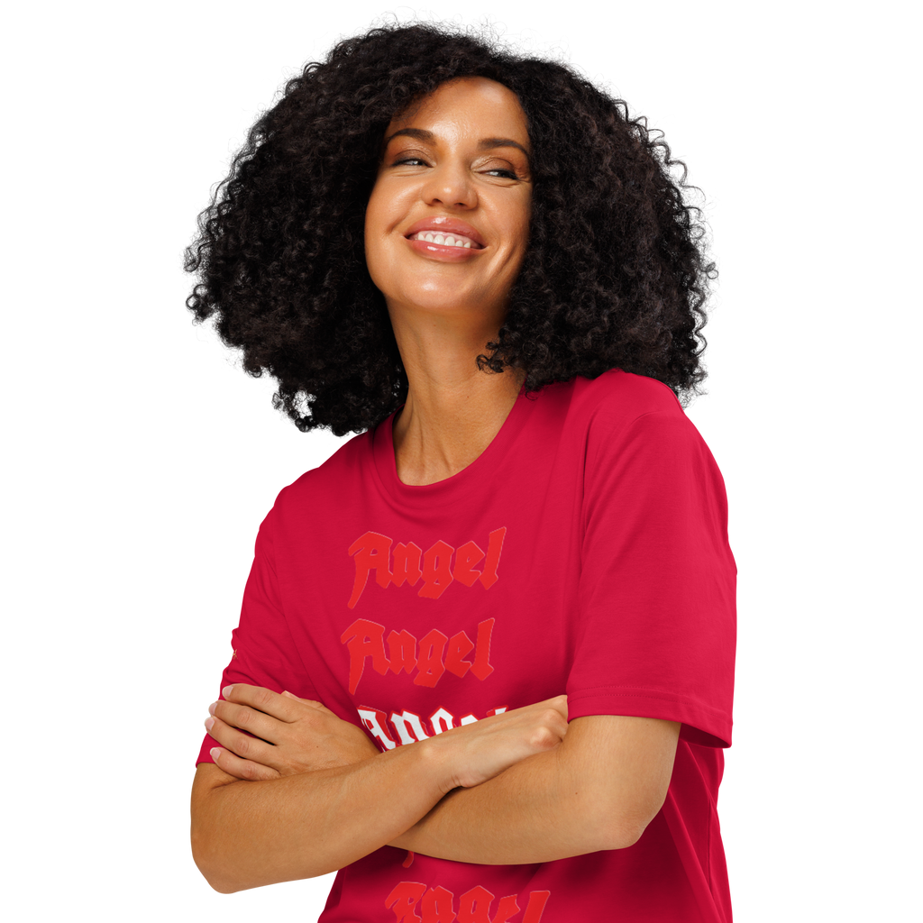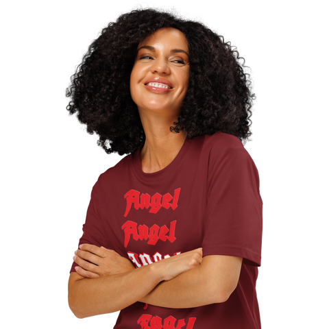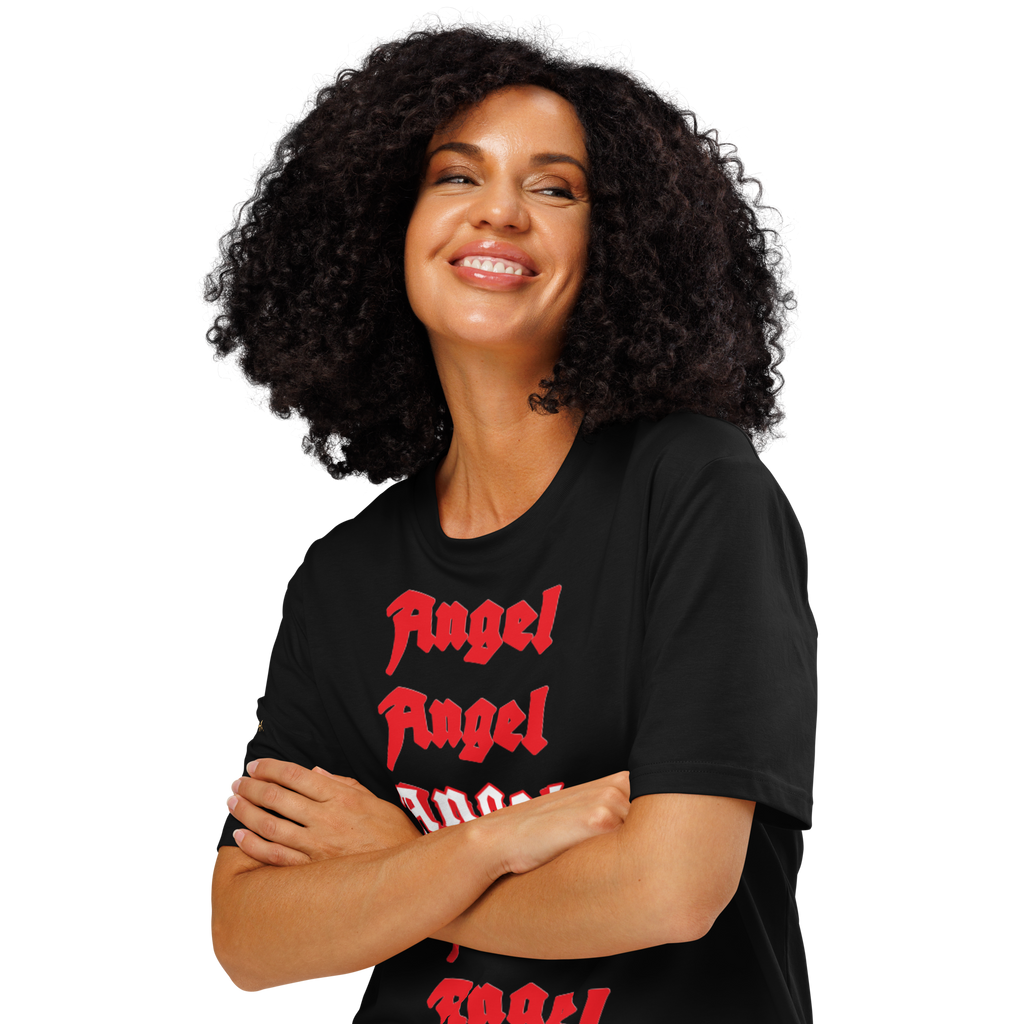 Silent Power. Written in Red. Command quiet attention with the Women’s TRONFORM V Angel In Disguise T-Shirt, a refined expression for women who lead with poise, not noise. Featuring the vertically stacked Angel graphic in gothic red across deep black cotton, this piece captures bold femininity with a mysterious edge where clarity meets coded rebellion.