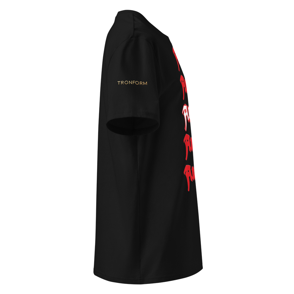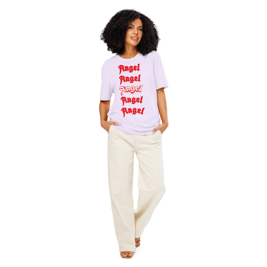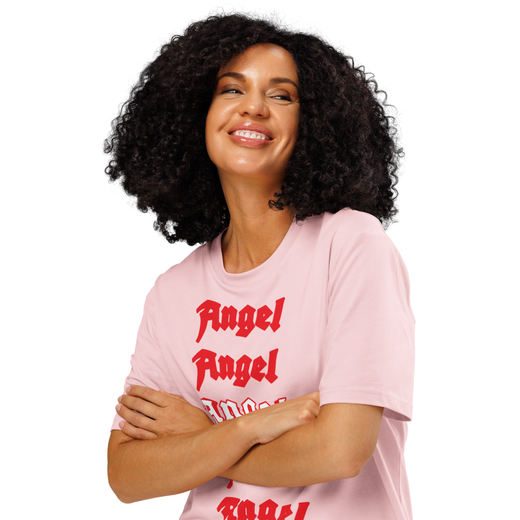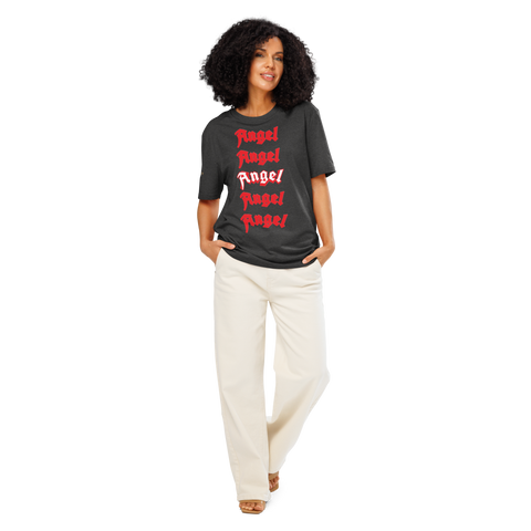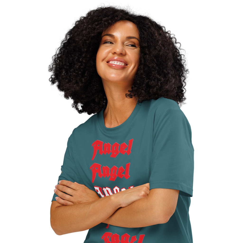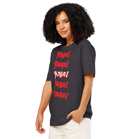 Silent Power. Written in Red. Command quiet attention with the Women’s TRONFORM V Angel In Disguise T-Shirt, a refined expression for women who lead with poise, not noise. Featuring the vertically stacked Angel graphic in gothic red across deep black cotton, this piece captures bold femininity with a mysterious edge where clarity meets coded rebellion.