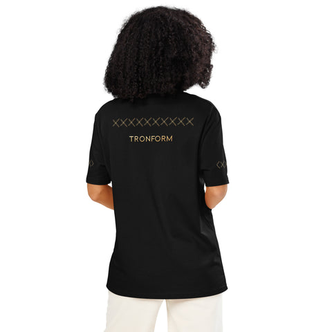 The Women’s TRONFORM X TF PRIMVS Grid Signal Tee is a soft-spoken statement wrapped in geometric elegance. Covered in TRONFORM’s signature gold grid design, this piece sends a silent message of intention, alignment, and style with every glance it collects. Each “X” is a whisper of code. Each look she draws? Precisely calculated. Designed for the woman who doesn’t need to say much because presence says enough.