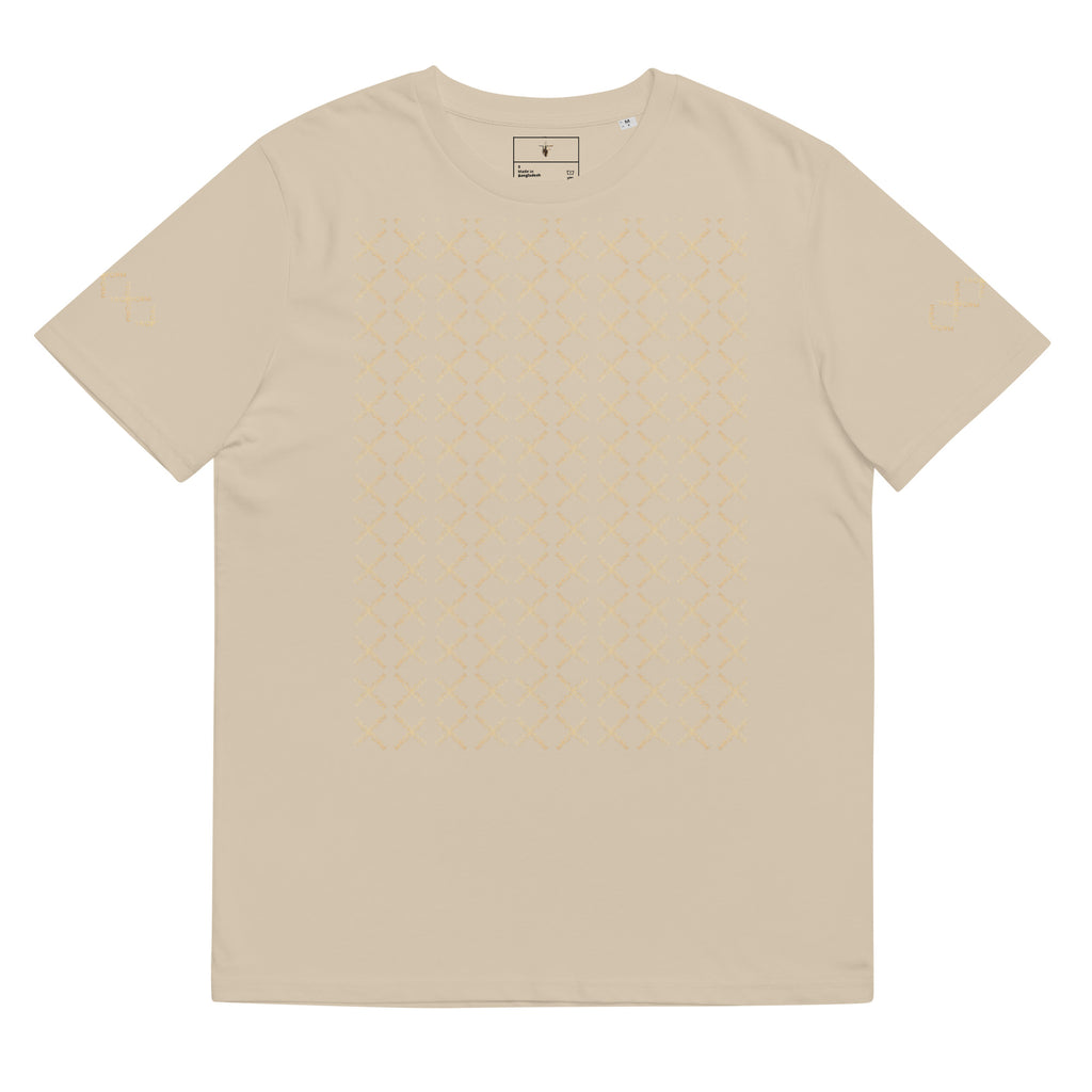 Golden Grid Design – All-over TRONFORM gold “X” pattern for coded beauty and elevated attention